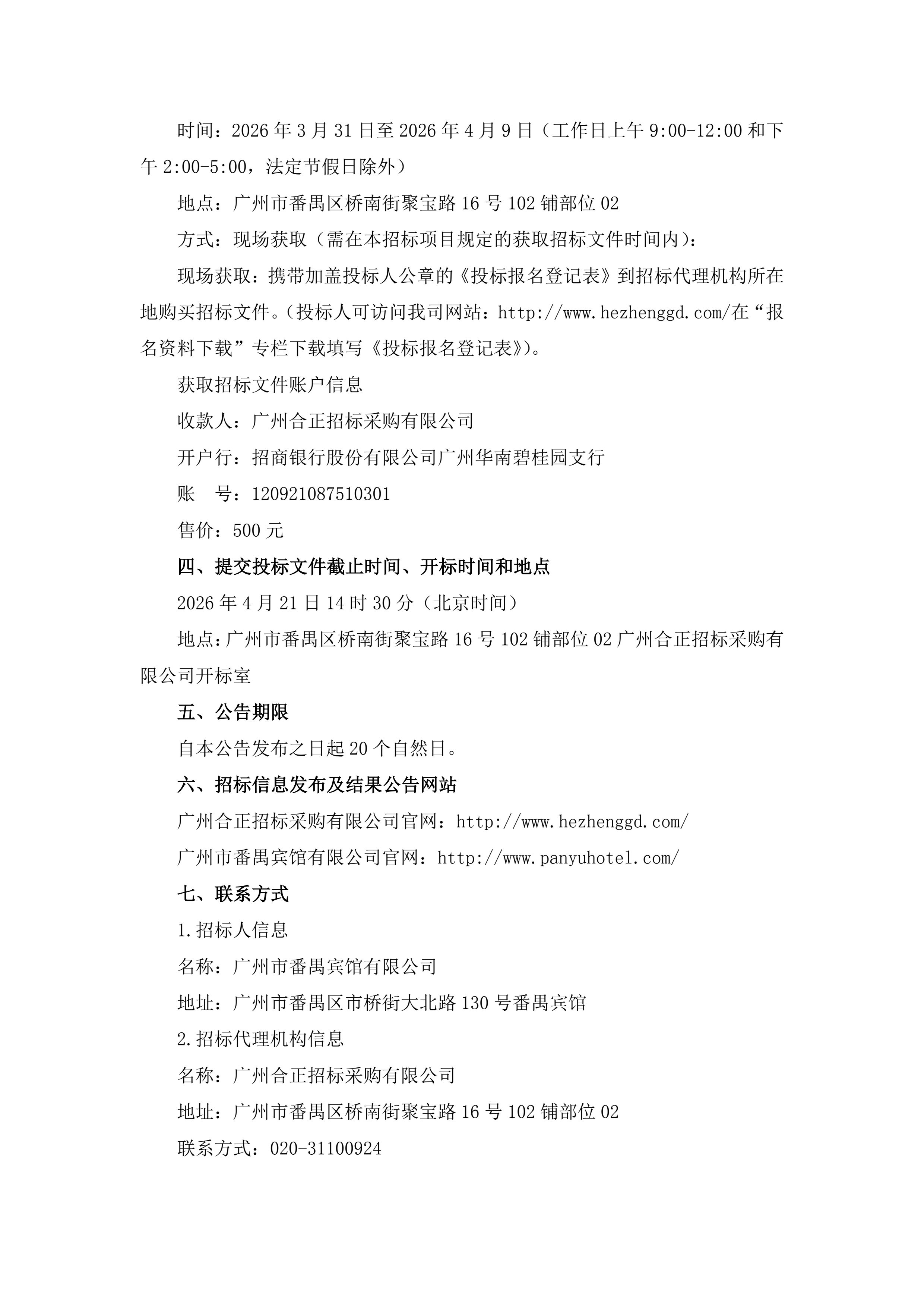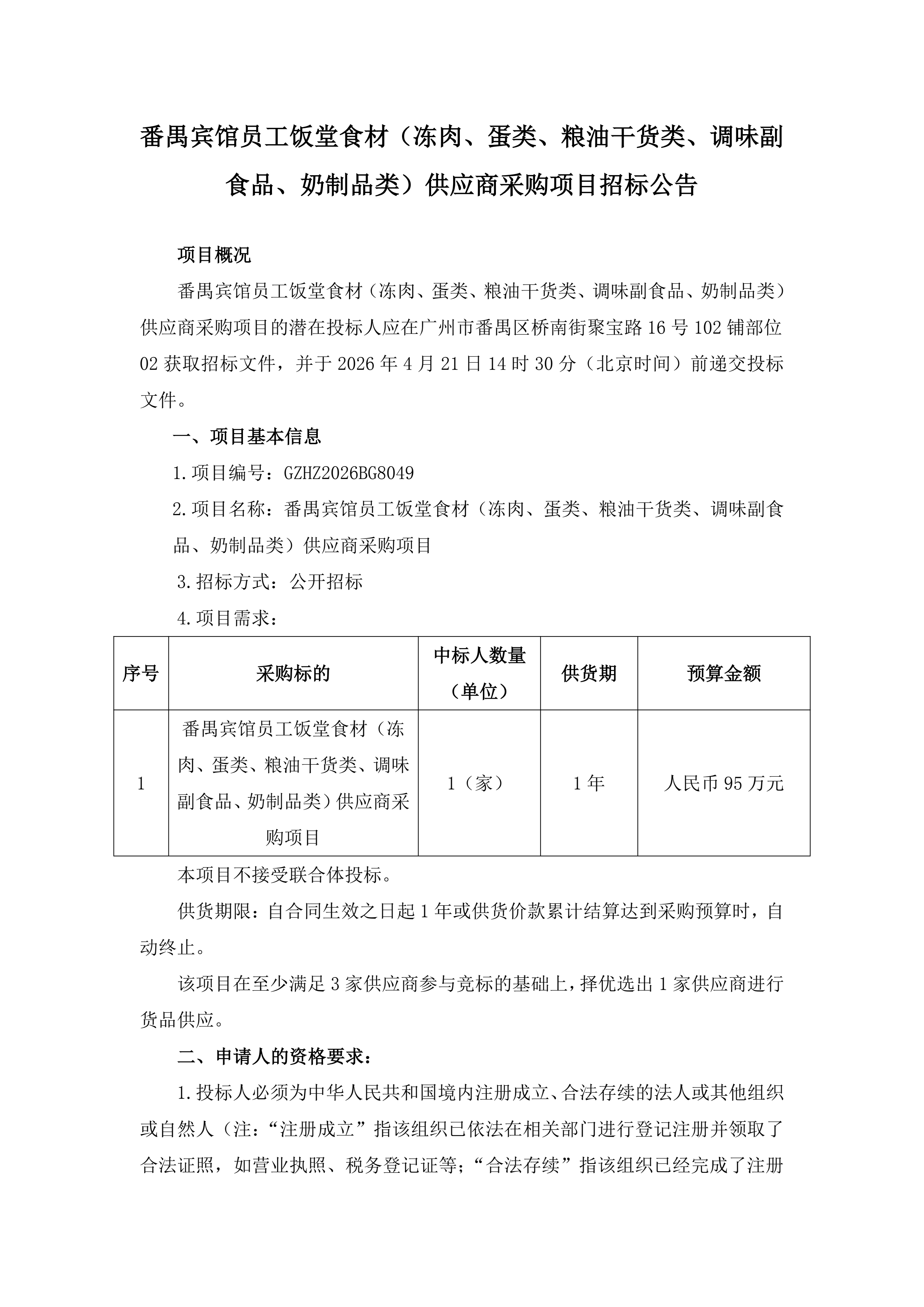 番禺宾馆员工饭堂食材(冻肉、蛋类、粮油干货类、调味副食品、奶制品类)供应商采购项目招标公告